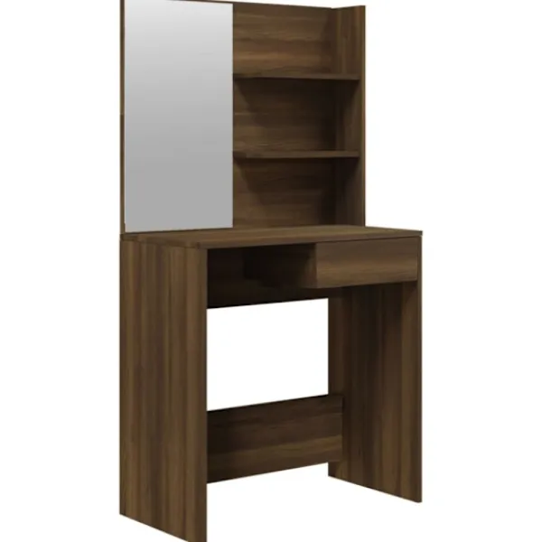 - Gott om förvaringsutrymme: Bordsytan, de tvådelade hyllorna på bordet och lådan under bordet har gott om utrymme för enkel åtkomst till smink, smycken och vardagliga nödvändigheter.