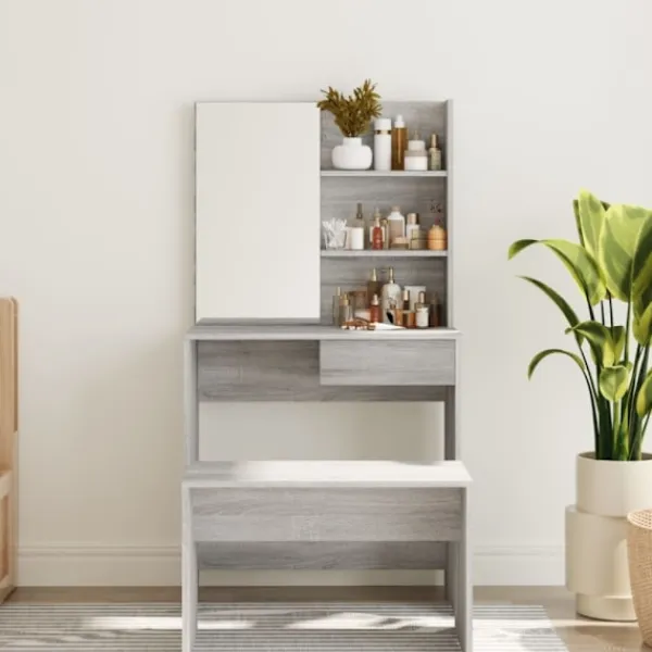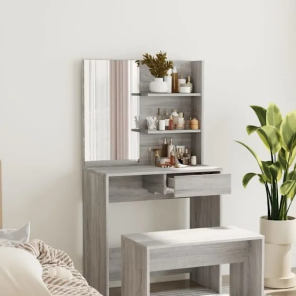 - Spegel: Sminkbordet med spegeln är perfekt för din dagliga skönhetsrutin. Spegeln låter dig ta hand om din hud och den underlättar när du sminkar dig!