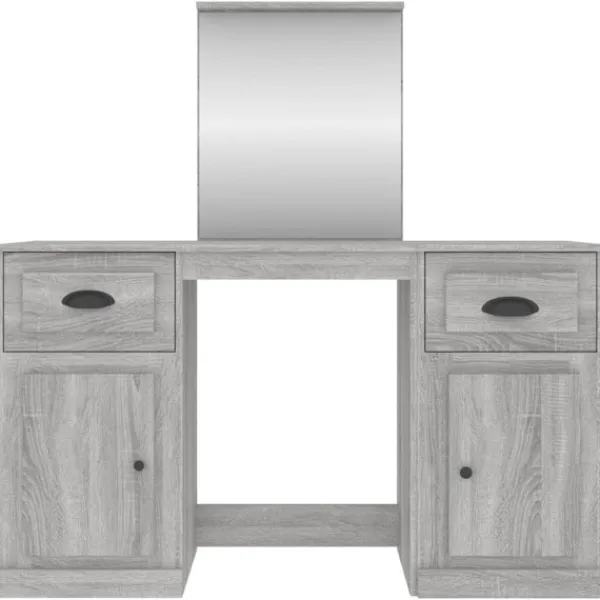 Med en trendig men ändå praktisk design, blir detta sminkbord med spegel en kontaktpunkt i ditt rum. Hållbart material: Det konstruerade träet är av exceptionell kvalitet med slät yta och är också starkt, stabilt och fuktbeständigt.Spegel: Sminkbordet med spegel är perfekt för din dagliga skönhetsrutin. Spegeln låter dig ta hand om din hud och den underlättar när du sminkar dig!Gott om förvaringsutrymme: Sminkbordet har gott om utrymme för enkel åtkomst till smink, smycken och vardagliga nödvändigheter. Bra att känna till:För att göra monteringen så enkel som möjligt, levereras varje produkt med en bruksanvisning. Varning: För att förhindra att den välter måste denna produkt användas tillsammans med det medföljande väggfästet.