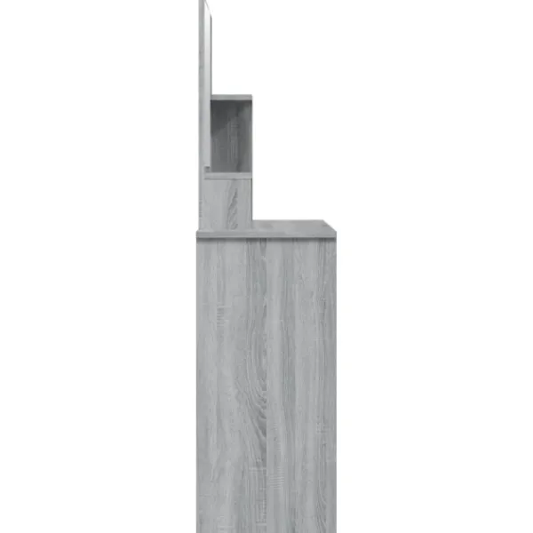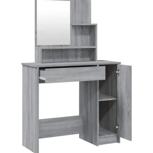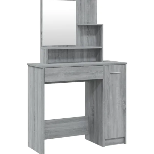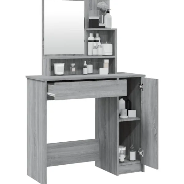 Detta sminkbord ger ditt sovrum ett tidlöst, elegant utseende. Sminkbordet med spegel är ett utmärkt komplement till din sovrumsinredning samtidigt som du har din kosmetika nära till hands! Praktiskt material: Det konstruerade träet är av exceptionell kvalitet med slät yta och har också styrka, stabilitet samt motståndskraft mot fukt. Det är tillverkat av konstruerat trä och är enkelt att rengöra.Gott om förvaring: Lådan och de öppna hyllorna på sminkbordet erbjuder plats för sminkartiklar och allt har sin plats.Spegel: Spegeln är en bra hjälp när du sminkar dig och utstrålar en elegant känsla på bordet.Praktisk dörr: Håll ordning i ditt hem genom att gömma småsaker bakom bordets dörrar. Varning:För att förhindra att den välter måste denna produkt användas med den medföljande monteringsanordningen för vägg Observera:Varje produkt levereras med en monteringsmanual i lådan för enkel montering.