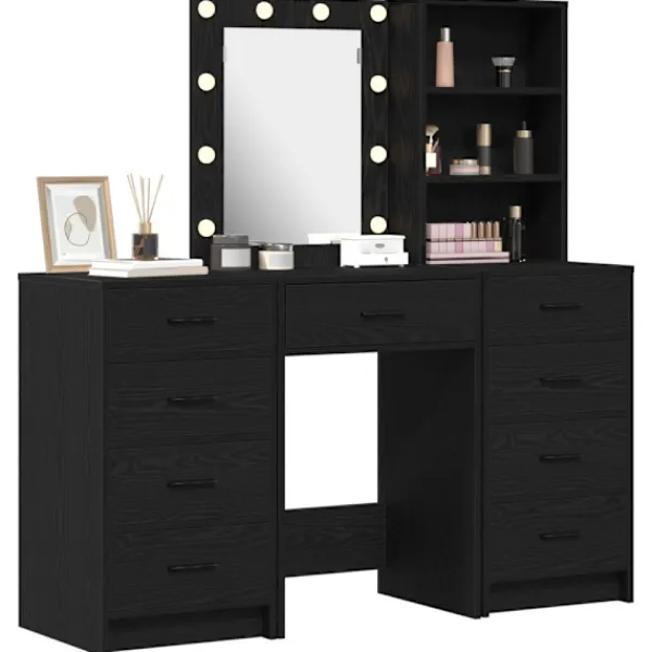 - Effektiv LED-belysning Med flexibla LED-remsor ger detta sminkbord precis rätt ljus, perfekt för sminkning även när det är mörkt. Det är verkligen bra för detaljerad grooming, vilket gör det till en praktisk sminkplats.