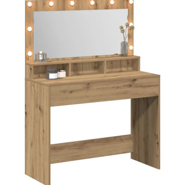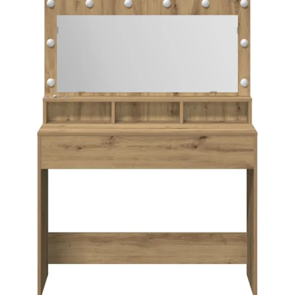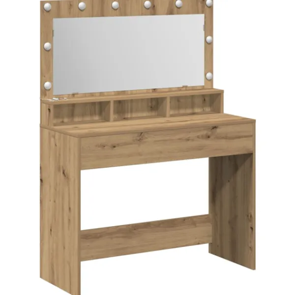 - Material: Sminkbordet är gjort av konstruerat trä, vilket ger en stark och hållbar konstruktion. Träet är valt för sin hållbarhet och stil, vilket gör att det ser bra ut länge. Det säkerställer att möbeln står emot slitage och skador, vilket ger lång livslängd.
