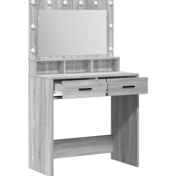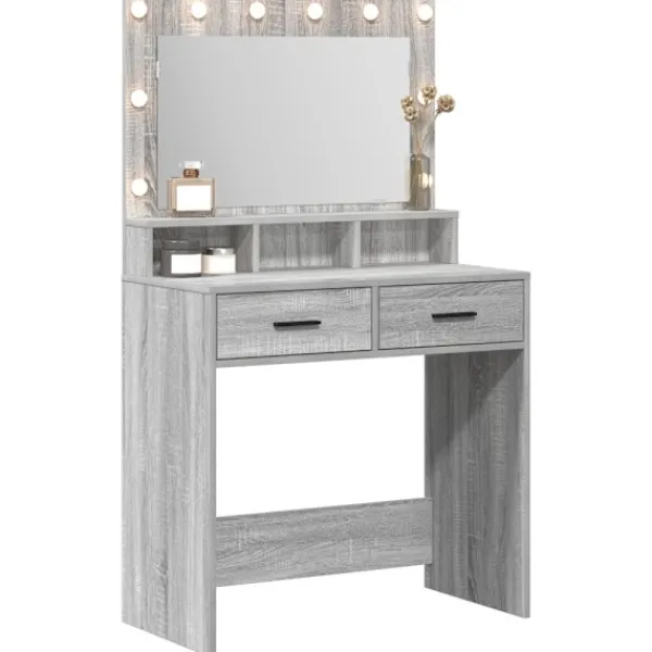 - Integrerat ljus: Bordet har LED-lampor som ger klart, energieffektivt ljus. Dessa lampor gör det lättare att se när du sminkar dig, och tryckknappen gör att du enkelt slår på ljuset, vilket gör användningen smidig.