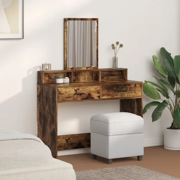 - Material: Det här sminkbordet är tillverkat i hållbart material som är byggt för att hålla. Dess strukturer i konstruerat trä ger stabilitet och styrka, så att det klarar av slitage. Med en matt finish får det en lyxig känsla som passar in i olika sovrum, göra det lätt att underhålla.