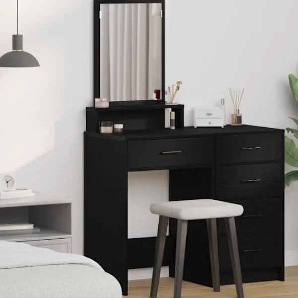 - Funktioner och funktionalitet: Sminkbordet har massor av förvaringsutrymme och hjälper dig att hålla ordning på tillbehör och kosmetika. Det är designat så att du lätt ska få tillgång till allt du behöver, vilket gör ditt sovrum mer organiserat.