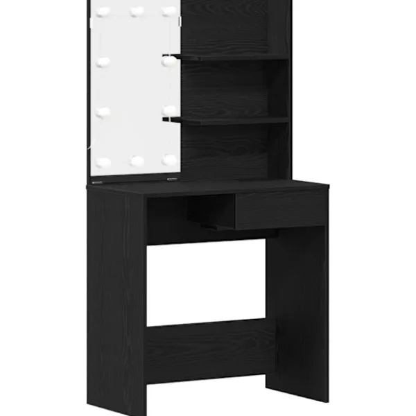 Det här sminkbordet med förvaring är både stiligt och funktionellt och passar perfekt i alla sovrum. Med sin moderna stil ger det liv åt vilket rum som helst och har massor av plats för förvaring tack vare spegel och LED-lampor. Allt är gjort i konstruerat trä med smarta ben och hyllor som gör det enkelt och praktiskt för den som vill ha både stil och ordning.
