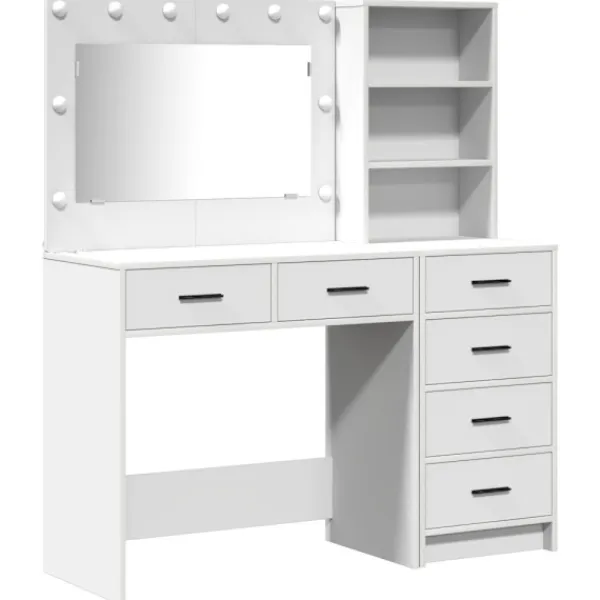 - Egenskaper / Funktion / Design: Den moderna rektangulära formen gör att det här bordet passar bra i ditt sovrum. Dess enkla design gör att du kan använda utrymmet effektivt. Sminkbordet har många fack, vilket är perfekt för dem som gillar ordning.