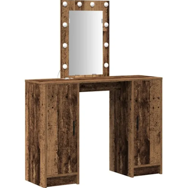 Det moderna sminkbordet kombinerar stil och funktion helt perfekt med sin smidiga design. Gjort av konstruerat trä ger den matta ytan en sofistikerad känsla, så det blir en central möbel i moderna sovrum. Bordet är inte bara en plats för smink utan lyfter även stämningen med sin stiliga design och smarta förvaringslösningar. De mjukt integrerade LED-lamporna, som drivs av USB, ger ett varmt ljus som gör att du ser bra ut när du fixar dig.