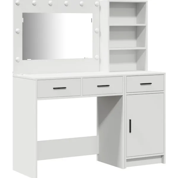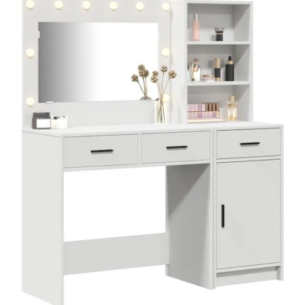 - Konstruerat trä Det här sminkbordet är tillverkat av hållbart konstruerat trä, vilket ger en modern look. Det är starkt men ändå lätt, vilket gör det enkelt att flytta. Den släta ytan passar perfekt för dagligt bruk och ser alltid fräsch ut.