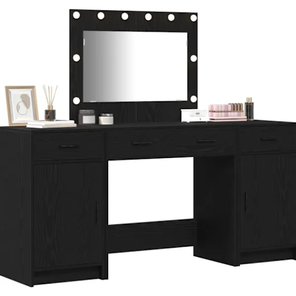 Det här moderna sminkbordet är en perfekt mix av funktion och stil. Med sin rektangulära form och smarta förvaringsfack passar det bra i vilket sovrum som helst. Tillverkat av konstruerat trä har bordet en snygg matt finish som ger det ett modernt utseende. Med en spegel som har LED-lampor är det skapat för att tillfredsställa dina skötselbehov samtidigt som det ser bra ut i ditt rum.