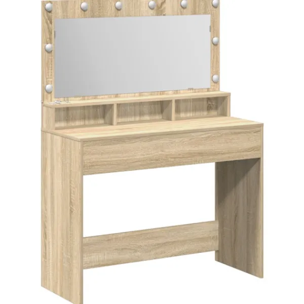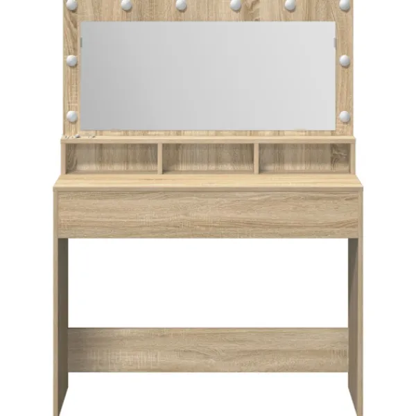 - Material: Sminkbordet är gjort av konstruerat trä, vilket ger en stark och hållbar konstruktion. Träet är valt för sin hållbarhet och stil, vilket gör att det ser bra ut länge. Det säkerställer att möbeln står emot slitage och skador, vilket ger lång livslängd.