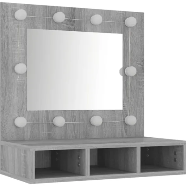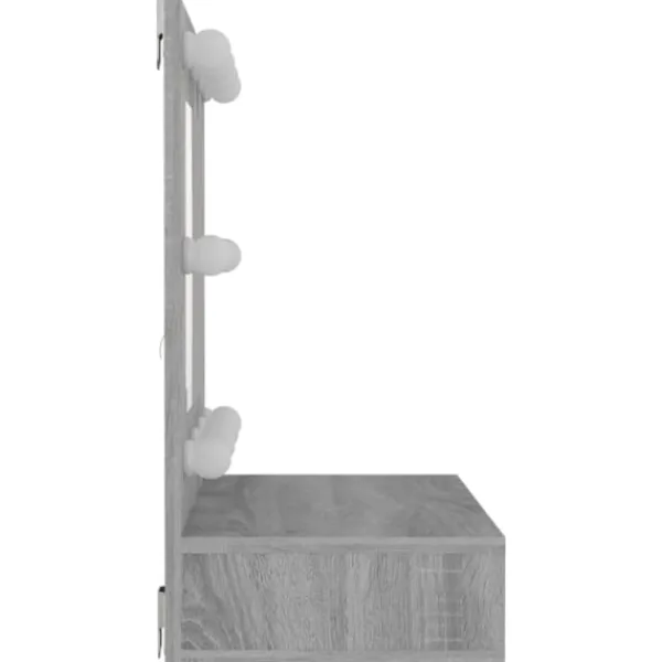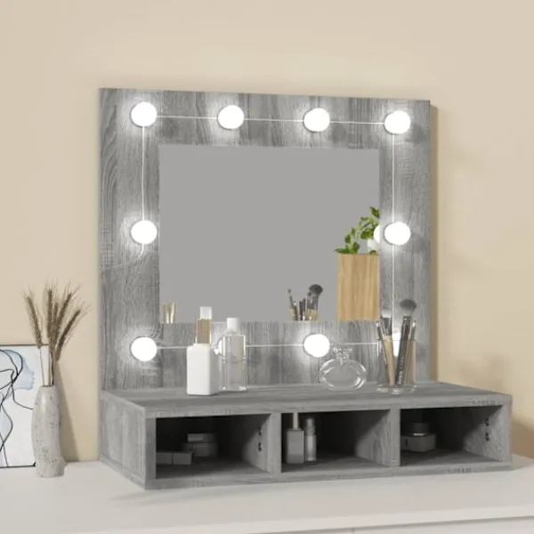 Få en härlig detalj i ditt rum med detta spegelskåp med LED! Hållbart material: Det konstruerade träet är av exceptionell kvalitet med slät yta och är också starkt, stabilt och fuktbeständigt.LED-ljus: Spegeln har också LED-lampor med USB, som är enkla att byta läge från varmt till kallvitt. LED-lamporna runt spegeln avger ljus.Flexibla installationssätt: Spegeln kan placeras direkt på din byrå, alternativt fästas på väggen för att spara golvutrymme.Tillräckligt med lagringsutrymme: Tack vare arrangemanget av de öppna hyllorna har du gott om utrymme och förvaring för alla dina skönhetsartiklar. Observera:Varje produkt levereras med en monteringsmanual i lådan för enkel montering.Skruv(ar) och plugg(ar) för insidan av väggen ingår ej. Sök och använd skruv(ar) och plugg(ar) som passar dina väggar. Om du är osäker, sök professionell rådgivning. Läs och följ varje steg i instruktionerna noggrant.