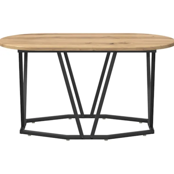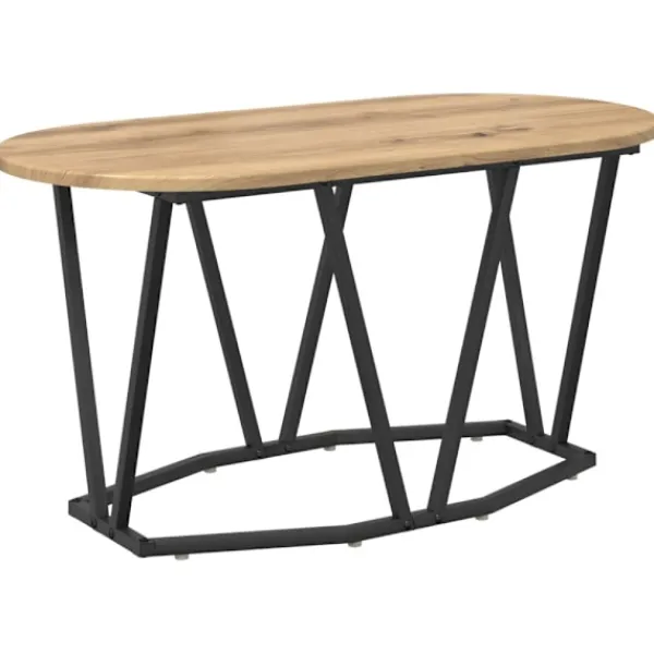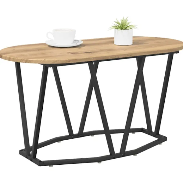 Det här moderna ovala soffbordet ger en härlig industriell känsla till vilket vardagsrum som helst. Det kombinerar tuff design med praktisk funktionalitet, perfekt för att ställa drycker eller visa upp dekorationer. Bordets unika ovala form passar i olika miljöer och ger en modern känsla till ditt rum.