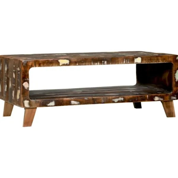 Detta rustika kaffebord passar perfekt med modern inredning tack vare sin enkla och funktionella design. Det är stilrent med rena linjer och minimal utsmyckning, och passar in i vilken stil som helst. Tänk dig att använda det som en mittpunkt i ditt rum, både för att visa favoriter som tidningar och växter eller för att njuta av en drink. Känn hur stil och funktion går hand i hand när du slappnar av med familj eller vänner.