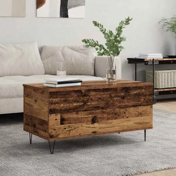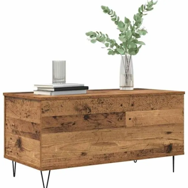 Det här industriella kaffebordet ger en cool mix av tuff charm och modern stil till ditt vardagsrum. Det mäter 90 x 44,5 x 45 cm, perfekt för dig som gillar stiliga och praktiska möbler. Den släta matt ytan ger en urban känsla, medan det slitstarka konstruerade träet passar bra i hem med industriell stil.
