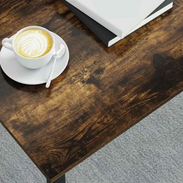 - Stabil konstruktion: Det här robusta kaffebordet är byggt av konstruerat trä och metall, som ger en stark grund för allt du behöver ha nära till hands. Materialen gör att det kan hålla för vardaglig användning och är hållbart nog att klara tidens gång.
