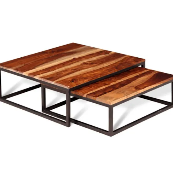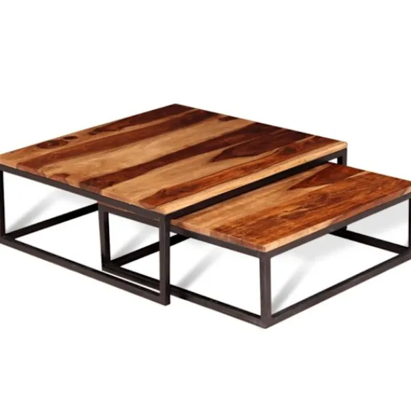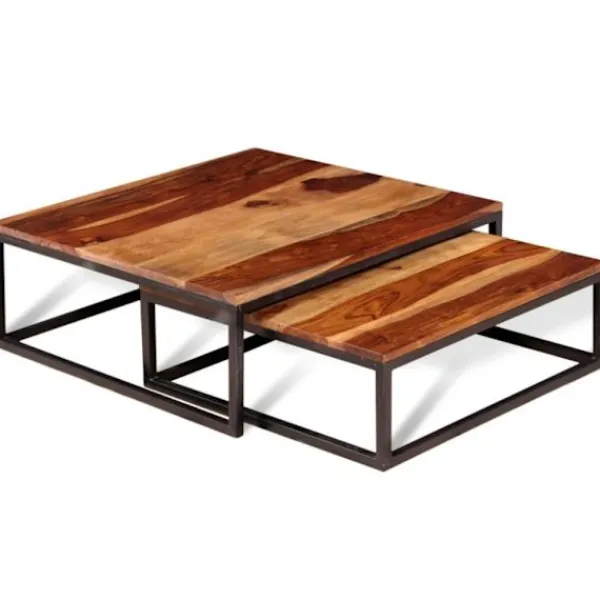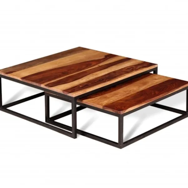 Bordskivorna är tillverkade i massivt akasieträ med matt finish och kommer att ge ditt hem en känsla av rustik charm. Möblernas vackra träkorn varierar vilket gör varje bord unikt. Akasie, även kallat rosenträ eller palissander är ett tropiskt lövträ som är känt för sina rika korn. De mycket hållbara metallramarna kommer ge din inredning en industriell känsla.