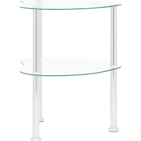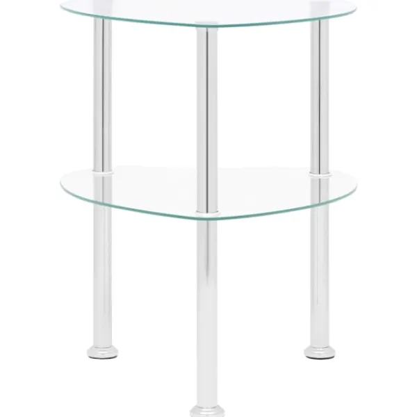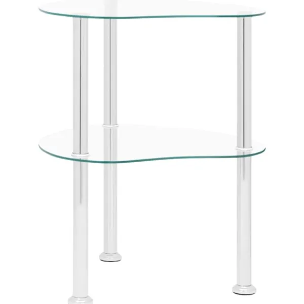 Detta eleganta sidobord med 2 hyllplan utstrålar en modern känsla och tar din heminredning till en ny nivå. Sidobordet är tillverkat i härdat glas med en grovslipad yta och rör i rostfritt stål, vilket gör det stabilt och hållbart. Den stadiga bordsskivan kan användas som en plats att ställa dricka eller andra saker. Det finns även utrymme mellan bordsskivan och hyllan för att förvara det väsentliga. Det kan även användas som exempelvis avlastningsbord, telefonbord och soffbord.