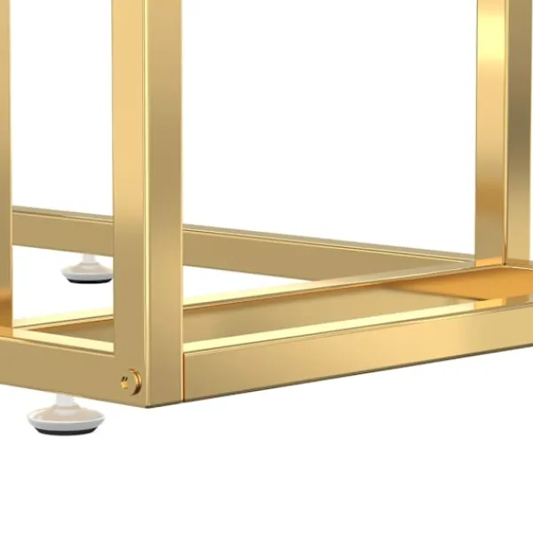 Detta konsolbord är ett perfekt val för att få en enkel men elegant stil i inredningen. Detta sidobord är tillverkat av härdat glas och pulverlackerat järn, vilket gör det extremt robust och stabilt. Bordsskivan har en stabil och säker yta för att placera dina drycker, mat och andra nödvändigheter på. Bordet är lätt att rengöra med en fuktig trasa.