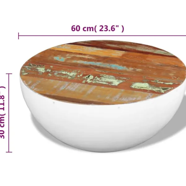 Det här soffbordet av återvunnet trä och med antik stil blir ett tidlöst tillskott till hemmet. Den massiva bordsskivan är en stabil och säker yta där du kan placera glas, frukter eller prydnader. Den unika skålformen ger bordet en originell stil. Det här exotiska soffbordet är tillverkat av återvunnet trä vilket innebär att varje möbel är unik och skiljer sig från de andra och att det har karaktärsdrag från olika träslag som teak, sheesham, akaciaträ, mangoträ, salträ med mera. Återvunnet trä är massivt, stabilt, hållbart och vackert. Spikhål eller synliga ådringar har egna historier och bjuder in andra generationer att bidra till med sin egen historia. Det här soffbordet är helt handgjort, och hantverksskickligheten ger bordet en spektakulär vintagestil och ett exotiskt utseende. Soffbordet har omsorgsfullt satts ihop, polerats, målats och vaxats. Koppla av och njut av att underhålla vänner och familj runt detta unika soffbord! Observera! Färgerna på möblerna varierar och varje möbel är unik. Leveransen är helt slumpmässigt.