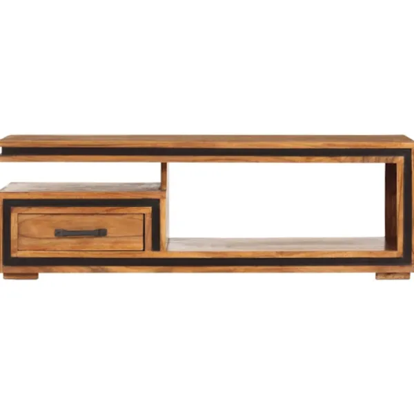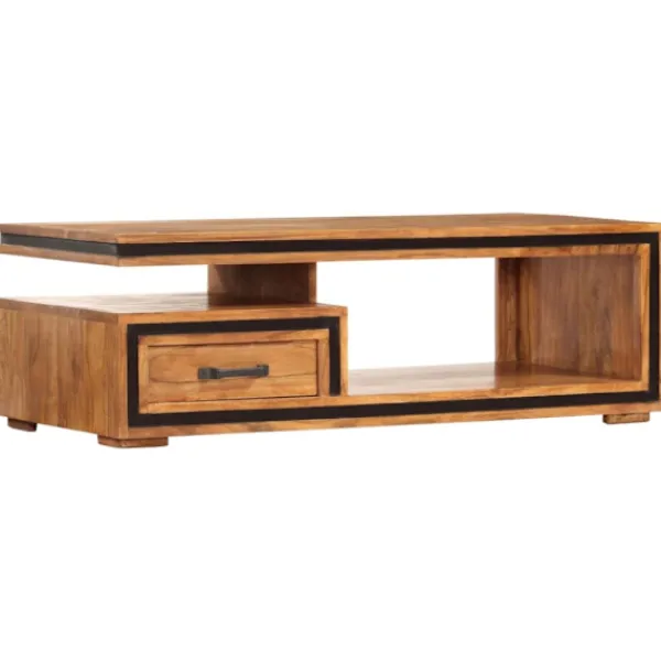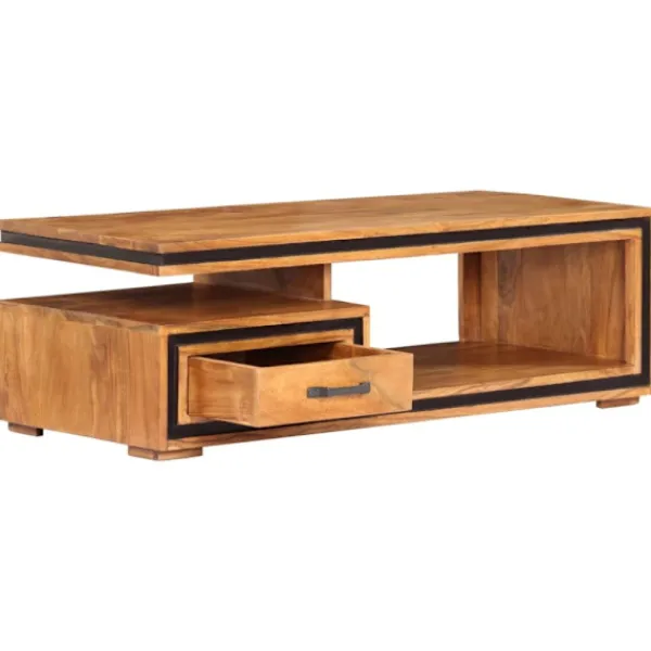 Soffbordet är tillverkat i massivt akacieträ med honungsfinish och är mycket hållbart och stabilt. Akaciaträ är ett tufft lövträ med vackra ådringar som kommer att hålla i många år. Det är också känt för sina rika fibrer. Varje steg i tillverkningsprocessen görs med stor omsorg, vare sig det är polering, målning eller lackning. Dessutom har detta vardagsrumsbord 1 fack och 1 låda, med gott utrymme för förvaring av dina böcker, koppar, liksom olika andra föremål.