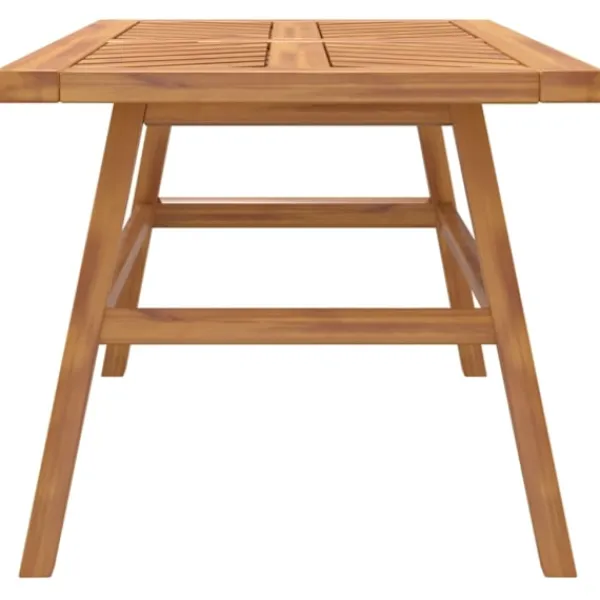 Njut av en härlig eftermiddag med din familj och vänner runt detta träbord som har en ovansida i fiskbensmönster! Massivt akaciaträ: Massivt akaciaträ är ett vackert naturmaterial. Acaciaträ är ett tropiskt lövträ, som är tätt, robust och hållbart.Stabil ram: Bordets träram säkerställer robusthet och stabilitet.Stort användningsområde: Med en bordsskiva av chevron och med vinklade ben är detta trädgårdsbord idealiskt för användning inomhus, i trädgården, innergården, gräsmattan, balkongen, restaurangen osv.Elegant design: Med ett distinkt diagonalt lamellmönster blir detta bord mycket uppmärksammat. Observera:För att förlänga livslängden på din utemöbel rekommenderar vi att du skyddar den med ett vattentätt överdrag.
