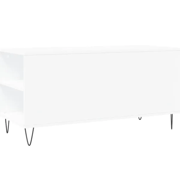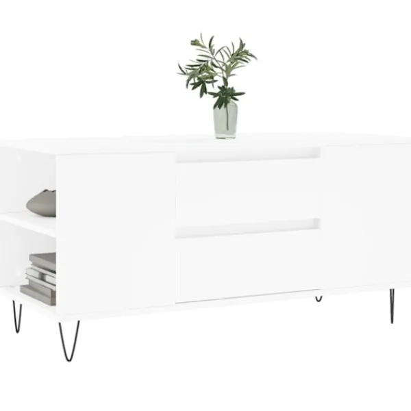 Få en elegant känsla i ditt vardagsrum med detta snygga soffbord. Hållbart material: Det konstruerade träet är av exceptionell kvalitet med slät yta och är också starkt, stabilt och fuktbeständigt. Det är tillverkat av konstruerat trä och är lätt att rengöra med en fuktig trasa.Gott om förvaringsutrymme: Detta soffbord har 2 lådor och 4 fack, med gott om förvaringsutrymme för att hålla dina tillhörigheter organiserade och inom räckhåll.Robust bordsskiva: Den robusta bordsskivan är perfekt för att placera dina drycker, mat och andra dekorativa föremål.Metallben: Metallbenen utstrålar en modern och lugn charm i din inredning samtidigt som du garanteras stabilitet. Varning:För att förhindra att den välter måste denna produkt användas tillsammans med det medföljande väggfästet.