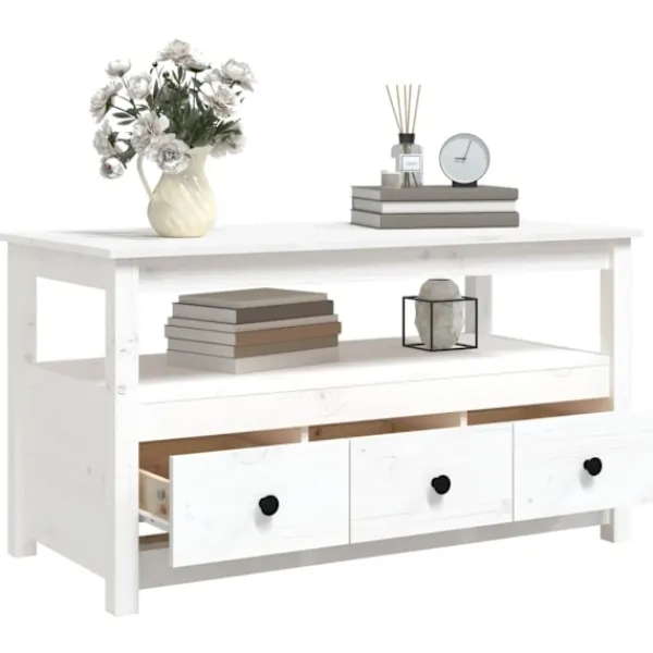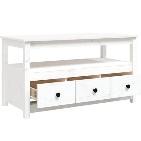 Detta klassiska soffbord i trä skapar mer förvaringsutrymme och blir ett vackert tillskott i ditt hem. Massivt furuträ: Massivt furuträ är ett vackert naturmaterial. Furuträ har raka fibrer, och knutarna ger materialet sin rustika utstrålning. Stabil ram: Träramen säkerställer robusthet och stabilitet. Gott om förvaring: Skänken har en öppen hylla och 3 lådor, med gott om förvaringsutrymme för att hålla dina olika saker välorganiserade och inom räckhåll. Robust bordsskiva Bordsskivan är perfekt för att visa dina favoritdekorationer, tavelramar och krukväxter. Varning:För att förhindra att den välter måste denna produkt användas med den medföljande monteringsanordningen för vägg Observera:Varje produkt levereras med en monteringsmanual i lådan för enkel montering.