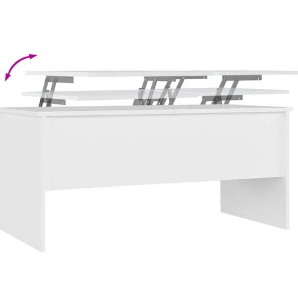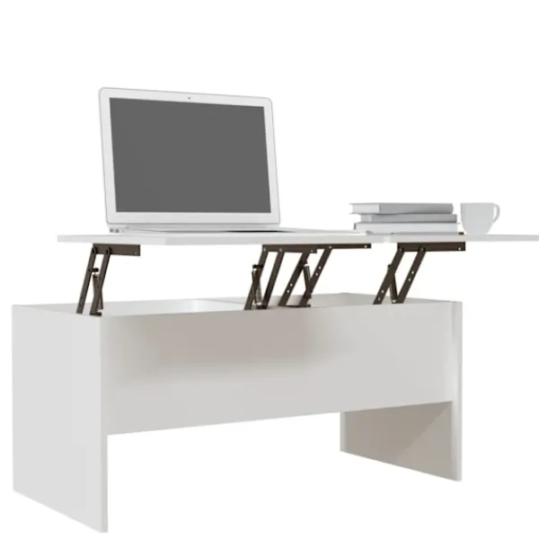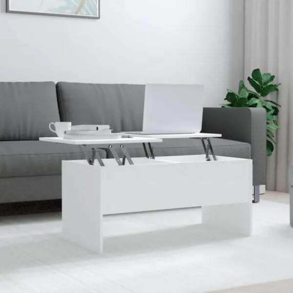 Letar du efter något mer stilrent, iögonfallande och praktiskt till ditt rum? Detta soffbord är ett perfekt val för dig. Praktiskt material: Det konstruerade träet är av exceptionell kvalitet med slät yta och har också styrka, stabilitet samt fuktbeständighet. Gott om förvaring: Detta moderna soffbord har två dolda förvaringsfack med gott om förvaring för att hålla dina böcker och tidningar inom räckhåll samtidigt som de skyddas från damm.Unik lyftbar design: Den justerbara mekanismen av bordsskivan ger den perfekta höjden för att skriva, läsa eller dricka.