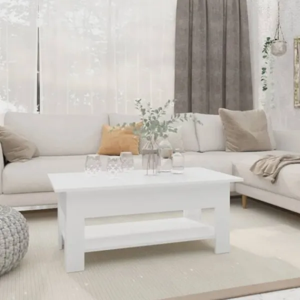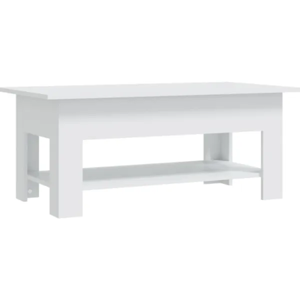 Detta moderna soffbord har en enkel men elegant design som är tänkt att passa alla inredningar. Soffbordet är tillverkat av konstruerat trä och är stabilt och hållbart. Bordsskivan är ideal för att placera mat och dryck, dekorativa föremål etc. Dessutom har den nedre hyllan gott om förvaringsutrymme för tidningar, böcker och andra nödvändigheter som du vill ha inom räckhåll. Dess hylla bidrar också till bordets moderna utseende och känsla.
