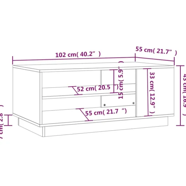 Detta soffbord har en modern design och blir en praktisk möbel i ditt vardagsrum. Konstruktionen av detta soffbord säkerställer dess robusthet, hållbarhet och långvariga service. Tack vare hyllorna har soffbordet gott om förvaringsutrymme. Den robusta bordsskivan är perfekt för att placera dina drycker, mat och andra dekorativa föremål. Dessutom är mittbordet lätt att rengöra med en fuktig trasa.