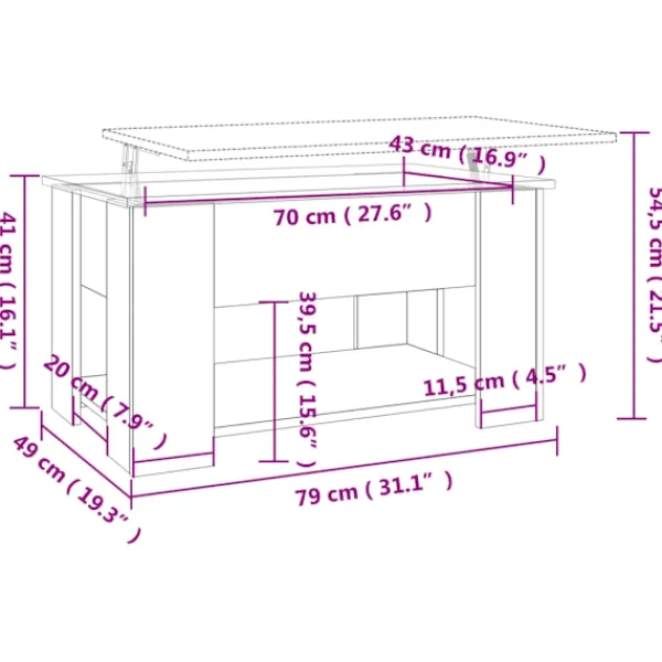 En sak är viktig i alla inredningar: soffbord! Ta med detta mångsidiga soffbord hem till dig just nu! Lyftbar bordsskiva: Sidobordets bordsskiva kan lyftas till en bekväm höjd och omvandlas till en plats där du kan arbeta eller äta.Praktiskt material: Det konstruerade träet är av exceptionell kvalitet med slät yta och har också styrka, stabilitet samt fuktbeständighet.Gott om lagringsutrymme: Den dolda förvaringen under bordsskivan gör det enkelt att hålla böcker eller andra föremål organiserade, vilket resulterar i tillräcklig yta för dagliga nödvändigheter, snacks eller bärbar dator.Mångsidigt bord: Med en unik design kan detta moderna soffbord fungera som ett tillfälligt matbord och till och med ett datorbord, vilket gör det till en helt utmärkt investering och tillägg till alla begränsade utrymmen.