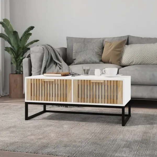 Letar du efter något mer stilrent, iögonfallande och praktiskt till ditt rum? Detta soffbord är ett perfekt val för dig. Hållbart material: Det konstruerade träet är av exceptionell kvalitet med slät yta och är också starkt, stabilt och fuktbeständigt.Gott om förvaringsutrymme: Sidobordet är utrustat med 2 lådor med om förvaringsutrymme för att hålla dina saker välorganiserade och inom räckhåll.Robust ovansida: Dess robusta ovansida är perfekt för att placera muggar, böcker och prydnadssaker.Metallfötter: Bordets metallfötter säkerställer robusthet och stabilitet. Bra att känna till:För att göra monteringen så enkel som möjligt, levereras varje produkt med en bruksanvisning.
