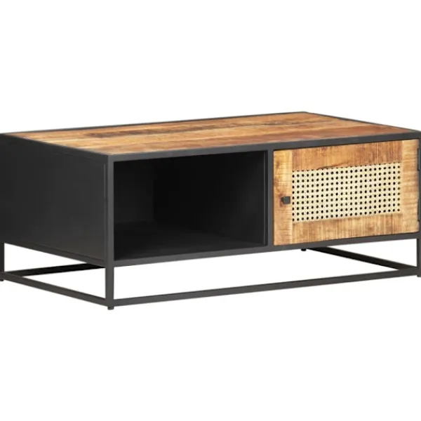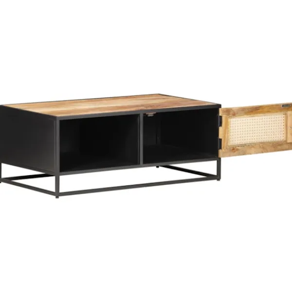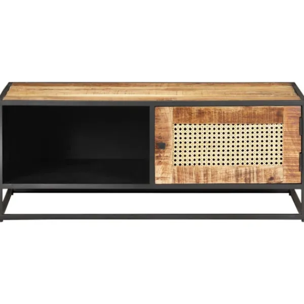 Massivt mangoträ är ett tropiskt lövträ. Det är både starkt och slitagebeständigt. Dessutom gör det fina hantverket och vackra träådringar varje soffbord något olikt de andra. Sidobordet har gott om förvaringsutrymme, så att du kan visa eller förvara prylar som du vill ha organiserade. Järnramen bidrar till dess stadighet och stabilitet. Dessutom har bordet ett handvävt rottingmönster på dörren som utstrålar en rustik charm.