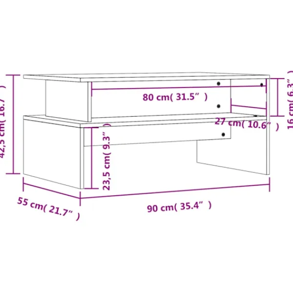 Få en elegant känsla i ditt vardagsrum med detta snygga soffbord. Hållbart material: Det konstruerade träet är av exceptionell kvalitet med slät yta och är också starkt, stabilt och fuktbeständigt.Gott om förvaringsutrymme: Sidobordet har gott om förvaringsutrymme för att hålla dina tillhörigheter organiserade och inom räckhåll.Robust bordsskiva: Soffbordets robusta bordsskiva är perfekt för att ställa dina drycker, mat och andra dekorativa föremål.