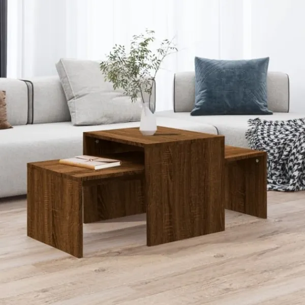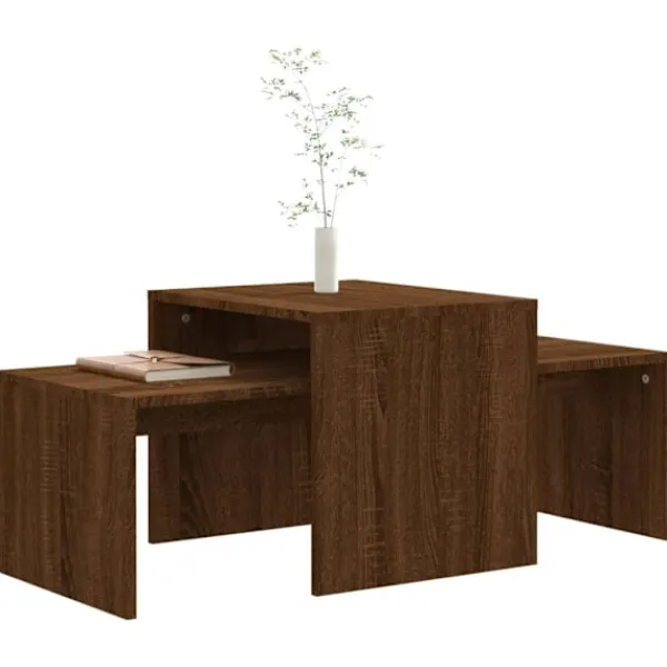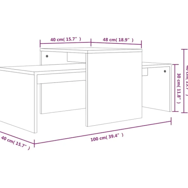 Få en modern känsla i din heminredning med dessa eleganta och moderna soffbord. Praktiskt material: Det konstruerade träet är av exceptionell kvalitet med slät yta och har styrka, stabilitet samt fuktbeständighet.Visningsfunktion: De breda bordsskivorna på dessa sidobord gör att du kan vila dina drycker, tidskrifter eller andra nödvändigheter.Praktisk design: Du kan använda dessa soffbord individuellt eller sätta ihop dem för att spara utrymme. När borden är staplade blir det minsta bordet ett dolt lagringsutrymme där du kan lägga undan saker och ändå ha dem inom räckhåll.Brett användningsområde: Accentbordet fungerar också som ett slutbord, tebord och telefonbord etc. Observera:Varje produkt levereras med en monteringsmanual i lådan för enkel montering.
