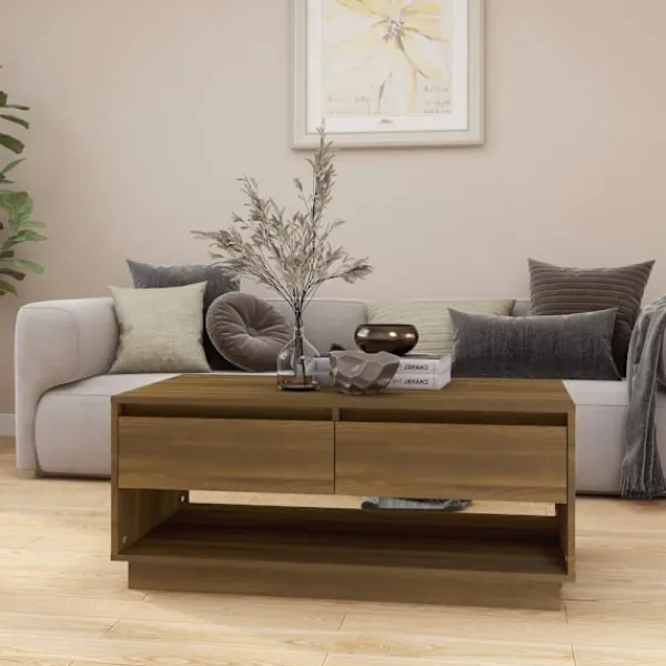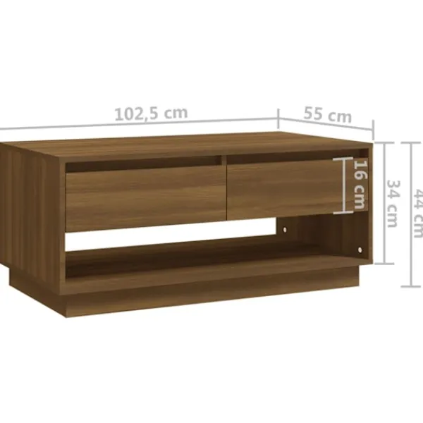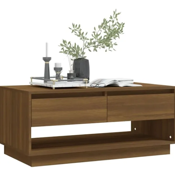 Detta soffbord har en modern design och blir en praktisk möbel i ditt vardagsrum. Konstruktionen av detta bord gör det robust och hållbart för många års användning. Tack vare lådorna har bordet gott om förvaringsplats och den robusta bordsskivan är en perfekt plats att ställa dryck, mat eller prydnadssaker på. Bordet kan enkelt torkas av med en fuktig trasa.