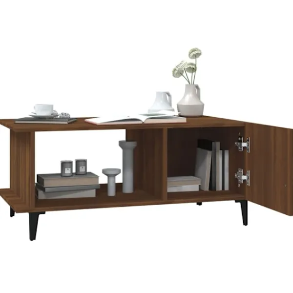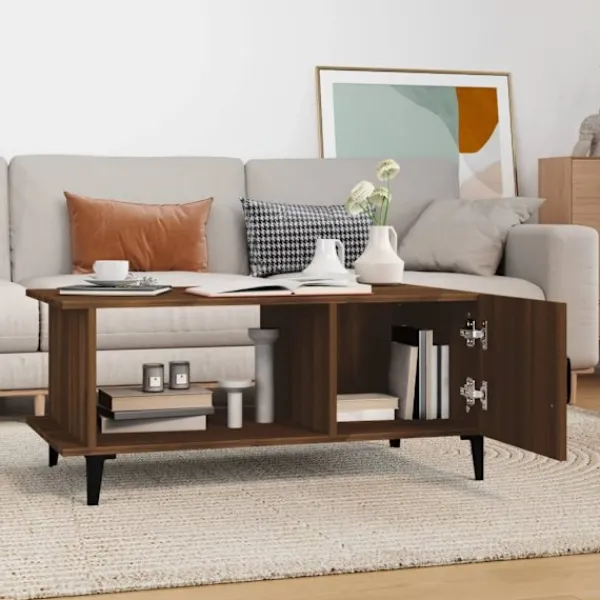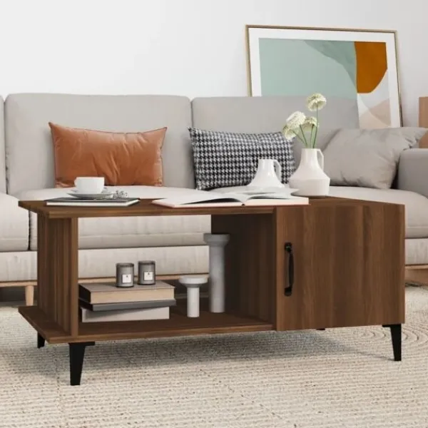 Letar du efter ett soffbord för din fritid? Detta soffbord utstrålar en unik känsla i ditt vardagsrum. Robust material: Det konstruerade träet är av exceptionell kvalitet med slät yta och är också starkt, stabilt och fuktbeständigt.Gott om förvaringsutrymme: Detta sidobord har en rymlig bordsskiva, ett fack och en hylla, med tillräckligt utrymme för dina tidningar, drycker, fjärrkontroller, vaser etc.Metallben: Vardagsrumsbordet har metallben som utstrålar en industriell och avslappnad känsla i din inredning samtidigt som det är stabilt.Praktisk bordsskiva: Bordsskivan har en tålig yta för att placera snacks, drycker, vaser, fruktskålar eller prydnadssaker på. Observera:Varje produkt levereras med en monteringsmanual i lådan för enkel montering.