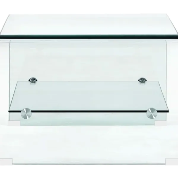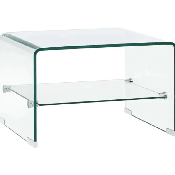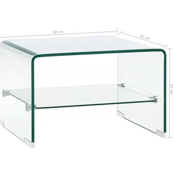 Presentera en modern charm i din inredning med detta soffbord i minimalistisk och tidlös stil! Soffbordet är tillverkat av härdat säkerhetsglas som är säkrare och starkare än vanligt glas. Tack vare den inbyggda hyllan hjälper detta praktiska soffbord dig att hålla ordning i ditt vardagsrum, och är perfekt för böcker, tidskrifter samt andra småsaker som du vill förvara inom räckhåll. Bordets stadiga konstruktion gör det ytterst hållbart. Slappna av och njut av en trevlig stund med vänner och familj runt detta unika soffbord!