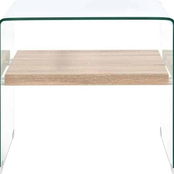Presentera en modern charm i din inredning med detta soffbord i minimalistisk och tidlös stil! Soffbordet är tillverkat av MDF och härdat säkerhetsglas som är säkrare och starkare än vanligt glas. Tack vare den inbyggda hyllan hjälper detta praktiska soffbord dig att hålla ordning i ditt vardagsrum, och är perfekt för böcker, tidskrifter samt andra småsaker som du vill förvara inom räckhåll. Bordets stadiga konstruktion gör det ytterst hållbart. Slappna av och njut av en trevlig stund med vänner och familj runt detta unika soffbord!