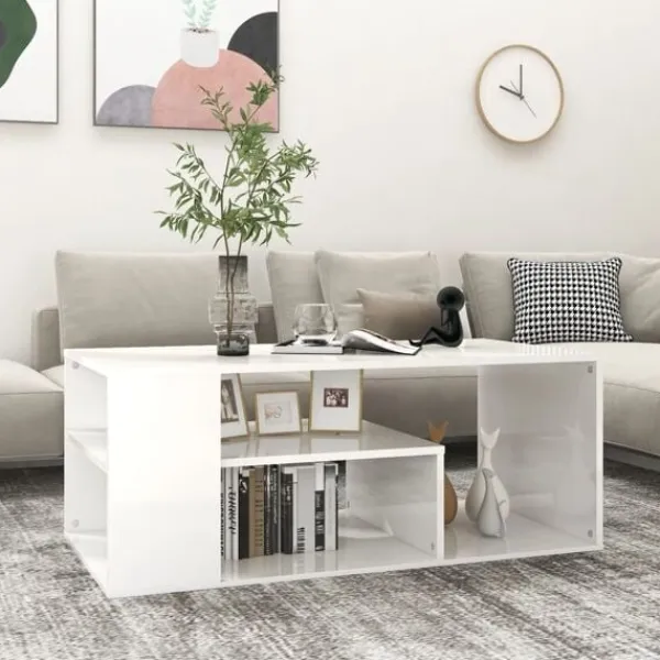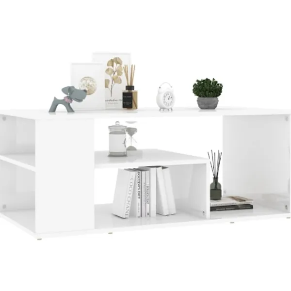 Detta soffbord blir en modern detalj i din inredning och har gott om förvaringsutrymme! Detta soffbord är stabilt och hållbart nog för att säkerställa lång livslängd. Den robusta bordsskivan är perfekt för att placera prydnadsföremål, fruktskålar, drycker etc. Det finns ett stort förråd med hyllor under bordsskivan, som gör att du kan förvara dina dagliga föremål som tidskrifter, böcker, snacks etc. Soffbordet är lätt att underhålla och rengöra med en fuktig trasa.