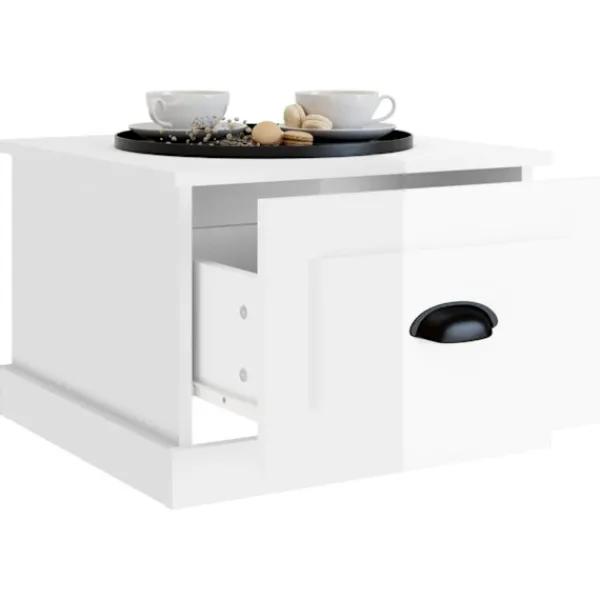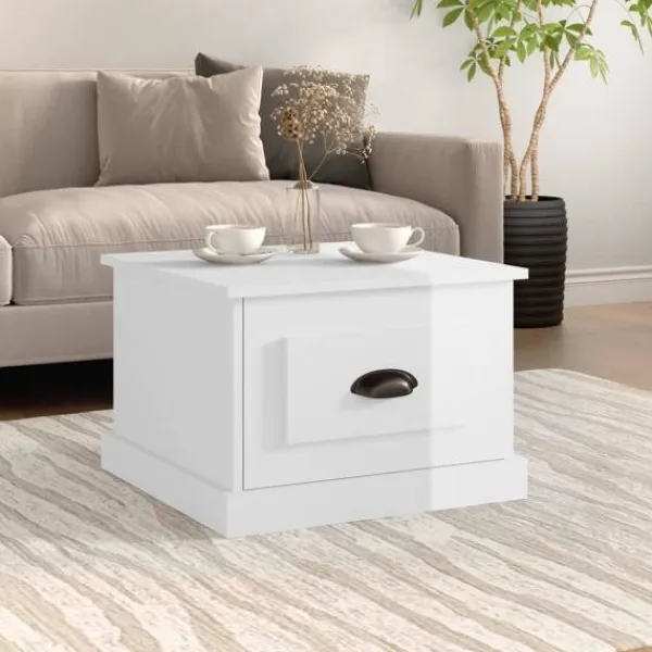 Letar du efter ett soffbord för din fritid? Detta soffbord utstrålar en unik känsla i ditt vardagsrum. Hållbart material: Det konstruerade träet är av exceptionell kvalitet med slät yta och är också starkt, stabilt och fuktbeständigt. Det är tillverkat av konstruerat trä och är enkelt att rengöra.Gott om förvaringsutrymme: Soffbordet har 1 låda. Den rymliga lådan håller dina saker organiserade.Robust bordsskiva: Den robusta bordsskivan är perfekt för att placera dina drycker, mat och andra dekorativa föremål.