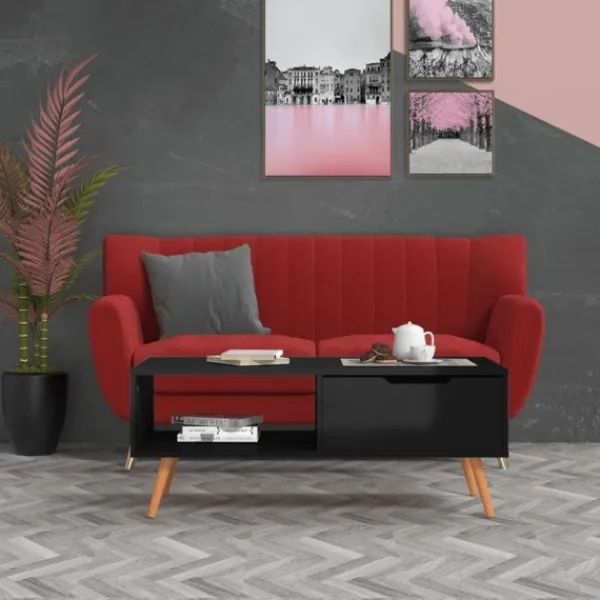 Det här soffbordet är ett utmärkt dekorativt och praktiskt tillägg till din vardagsrumsinredning. Det här soffbordet är tillverkat av spånskiva och är robust, hållbart och mångsidigt. Dessutom ger sidobordet gott om utrymme för att hålla dina saker organiserade och inom räckhåll. Uppgradera din inredning till nästa nivå med det här eleganta bordet!
