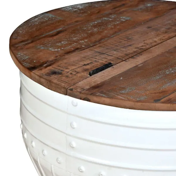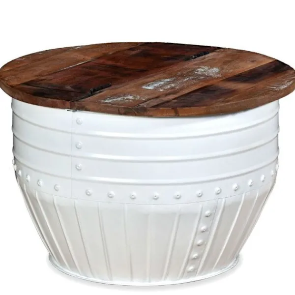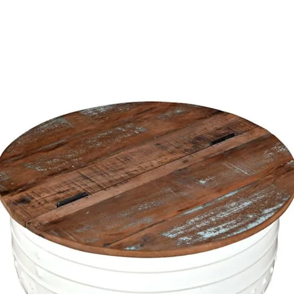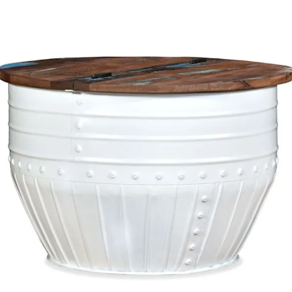 Detta unika och industriella soffbord i trä blir ett tidlöst tillägg i ditt hem. Dess unika tunnformade bas ger bordet en industriell utstrålning. Soffbordet har en massiv bordsskiva i massivt trä är optimal för att placera glas, vaser, frukt eller prydnader medan dess förvaringsutrymme under bordsskivan ger extra utrymme för att hålla föremål ur sikt. Bordsskivan är tillverkad i massivt trä som betyder att varje bord är unikt och något olika från nästa, samt har karaktärer av olika trä såsom teak, ackacia, mangoträ etc. Återvunnet trä är massivt, stabilt, hållbart och vackert. Soffbordet har genomgått en detaljerad process som består av polering, målning och lackering. Koppla av och njut av att sitta med familjen runt detta unika soffbord! OBS: Denna produkt är redan monterad; ingen montering krävs. Bordsskivans färg varierar för varje möbel vilket gör varje möbel unik; leveransen är slumpartad.