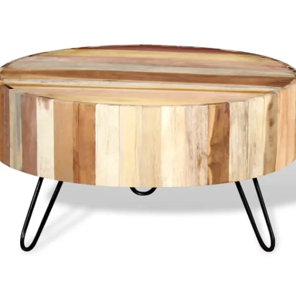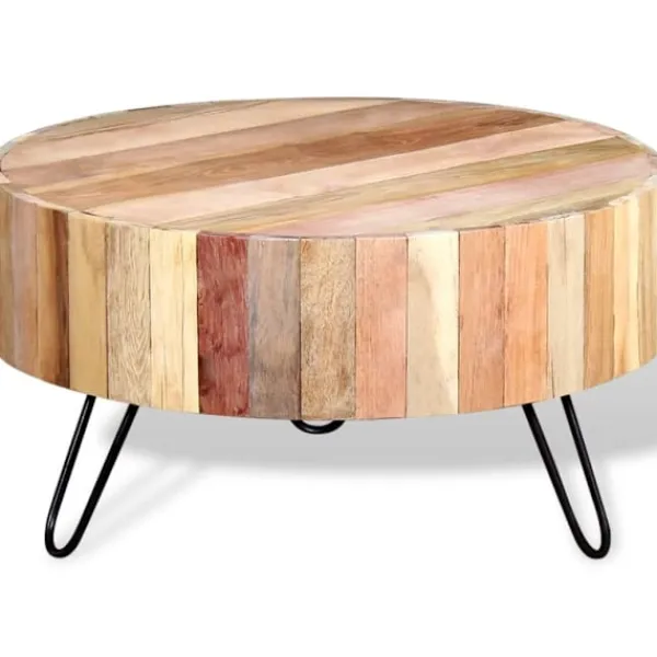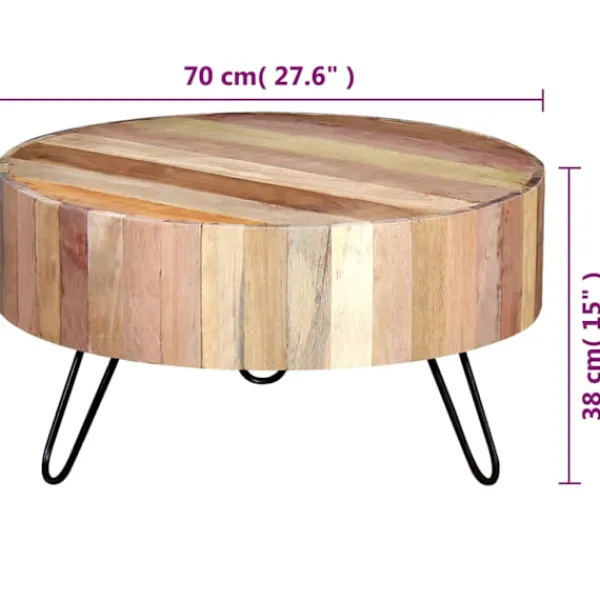 - Material: Bordsskiva i massivt återvunnet trä + pulverlackade järnben