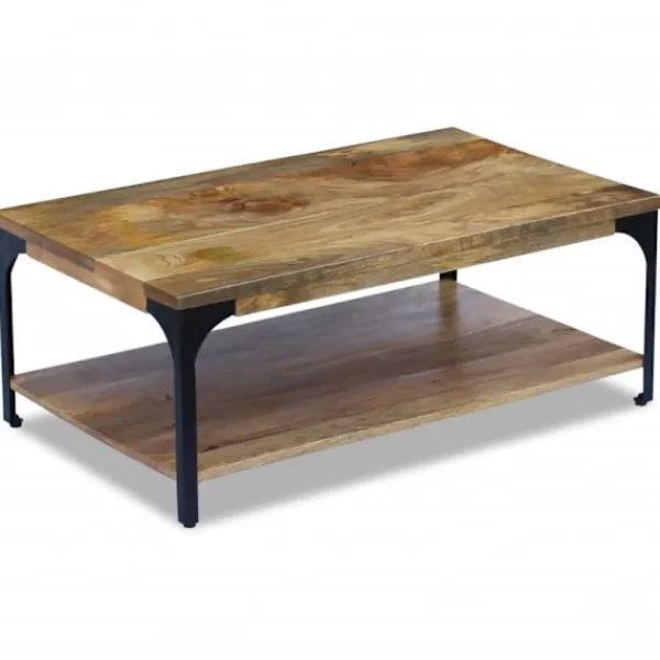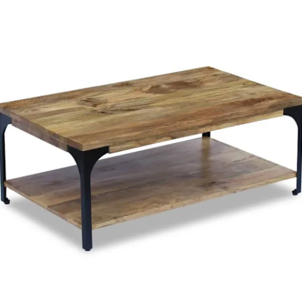 Det här soffbordet i trä blir ett unikt tillskott till vardagsrummet. Den massiva träkonstruktionen gör bordet stabilt och säkert för att ställa drycker, vaser, fruktkorgar eller prydnadsföremål på. Det kan även användas som avlastningsbord, vardagsrumsbord, sidobord, småbord med mera. Bordet har en hylla för bra förvaring.