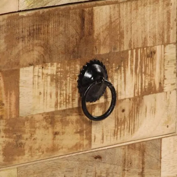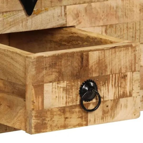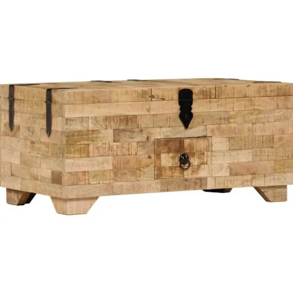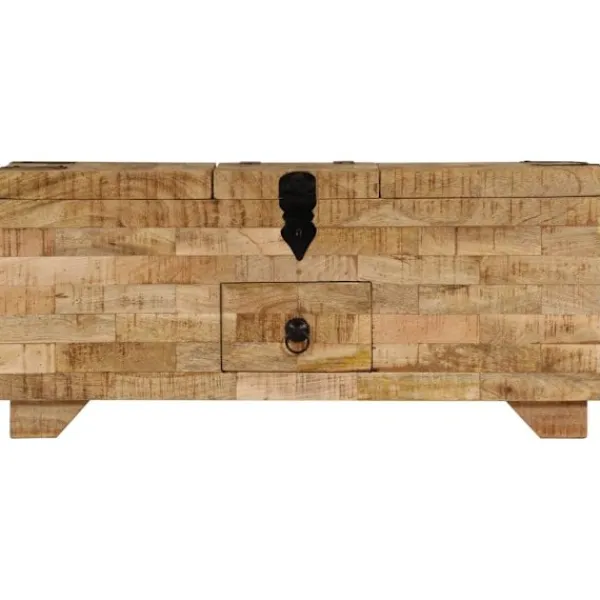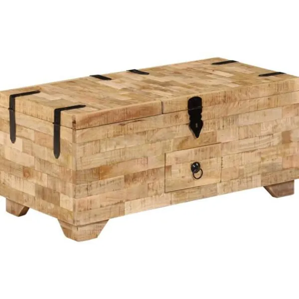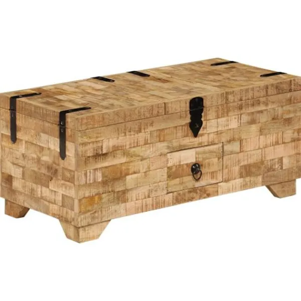Soffbordet i trä är elegant men praktiskt. Det kan användas som kista såväl som förvaringslåda. Dess charmiga design gör avlastningsbordet till en mittpunkt i alla rum. Konsolbordet är tillverkat i massivt mangoträ som gör det väldigt stadigt och hållbart. Varje steg i konstruktionen utförs med största noggrannhet, från polering, målning till lackering. Dess hantverk och estetiskt vackra träådringar gör varje möbel unik och något annorlunda än nästa. Det har tre utrymmen och en låda. Monteringen är enkel. Obs: Träådringarna och färgerna kan variera från möbel till möbel, vilket gör varje soffbord unikt; leveransen är slumpartad. Låset ingår inte.