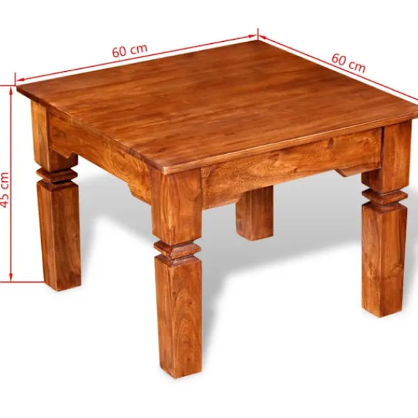 Detta unika bord, gjort av massivt trä med honungsytbehandling, passar perfekt i vilket rum som helst. Bordet kan användas som soffbord, sidobord, avlastningsbord eller vardagsrumsbord. Den massiva bordsskivan ger en stabil och säker yta där du kan placera drycker, en fruktkorg, en vas eller andra prydnadsföremål. De fyra slitstarka benen bidrar till den robusta konstruktionen. Soffbordet är handgjort och är tillverkat av massivt trä med egenskaperna från sheeshamträ, palisanderträ och rosenträ. Det fina hantverket och de vackra träkornen gör varje möbel unik. Observera! Färgerna på möblerna varierar och varje möbel är unik. Leveransen är helt slumpmässig.