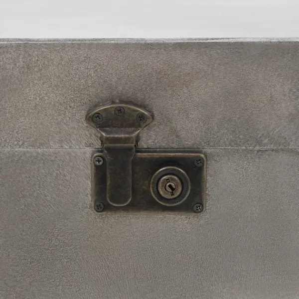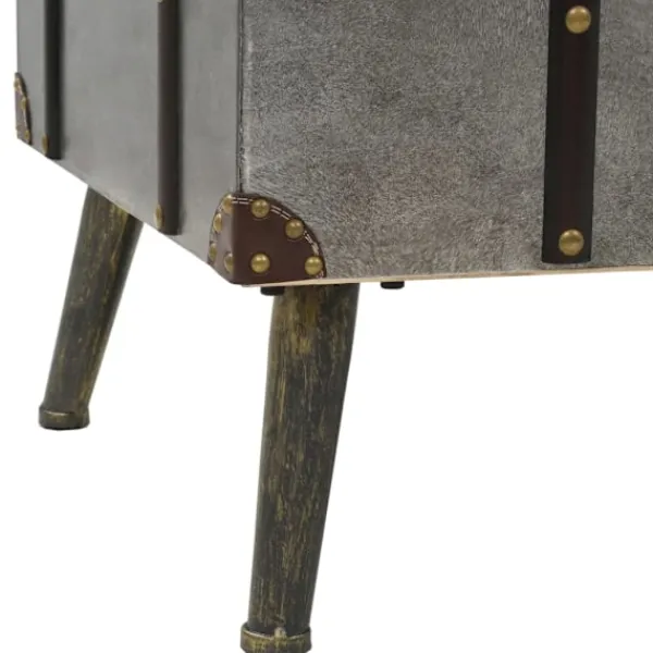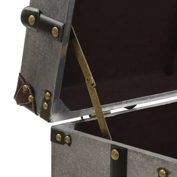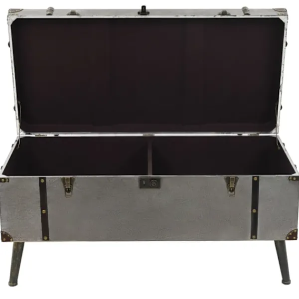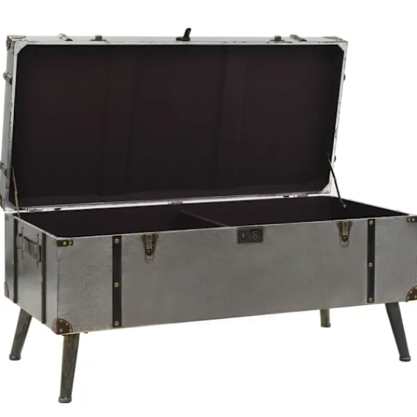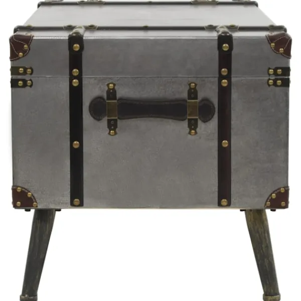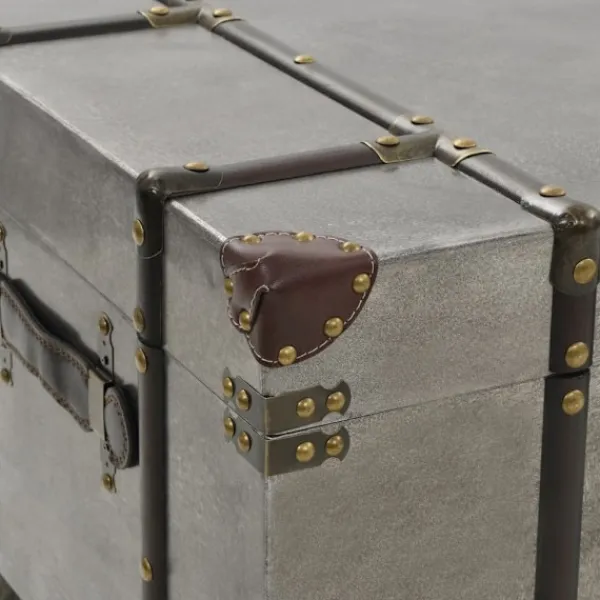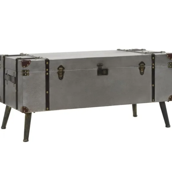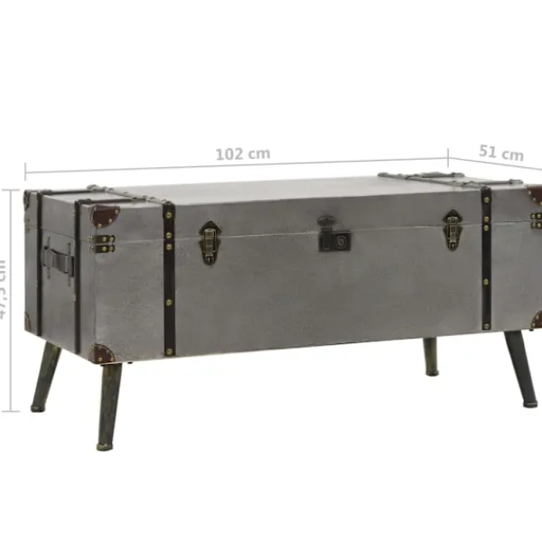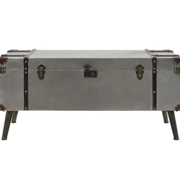Detta unika soffbord format som en resekoffert blir ett elegant tillägg i din inredning tack vare sin spektakulära vintagestil. Det kan även användas som ett sidobord eller avlastningsbord. Detta hållbara och vackra bord är tillverkat av MDF med aluminiumdetaljer, ett foder i nonwoven-tyg och robusta stålben som bidrar till dess rustika charm. Bordet är en perfekt plats att ställa drickor, vaser, krukväxter, fruktkorgar och andra dekorativa föremål på. Denna förvaringslåda har två innerfack som har gott om förvaringsutrymme för plädar, böcker, tidskrifter, fjärrkontroller och andra föremål som du vill dölja men ändå ha inom räckhåll. Tack vare soffbordets mjuka och bekväma handtag kan det enkelt flyttas runt i ditt vardagsrum. Monteringen av denna produkt är lättsam.
