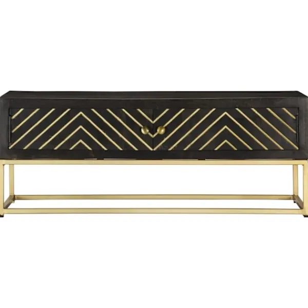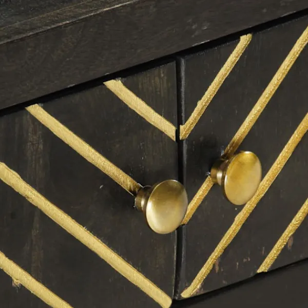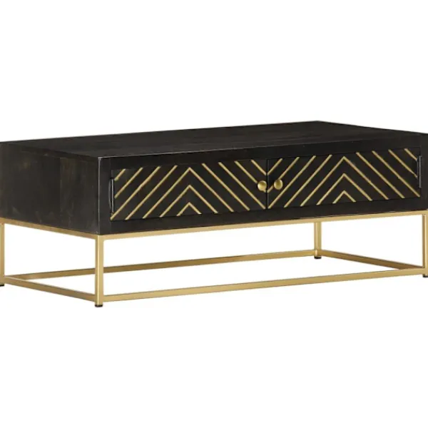 Vårt soffbord i trä med retro stil har en finish i svart och guld och blir en lyxig detalj i din inredning. Soffbordet är tillverkat i massivt mangoträ som är stabilt, hållbart och vackert, och hantverket bidrar till dess spektakulära retro stil. Varje steg i processen utförs med största omsorg, vare sig det är polering, målning eller lackering. Hantverket och de vackra träådringarna gör varje möbel unik och något annorlunda från nästa. Sidobordet har en robust och stabil yta där du kan ställa drickor, mat, fruktkorgar eller prydnadssaker. Soffbordet är enkelt att montera. Viktigt: Färgerna varierar från möbel till möbel vilket gör varje möbel unik och något annorlunda än de andra. Leveransen är slumpartad, vilket säkerställer varje produkts exklusivitet och individualitet.